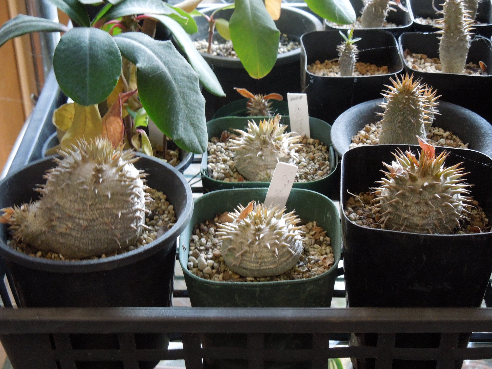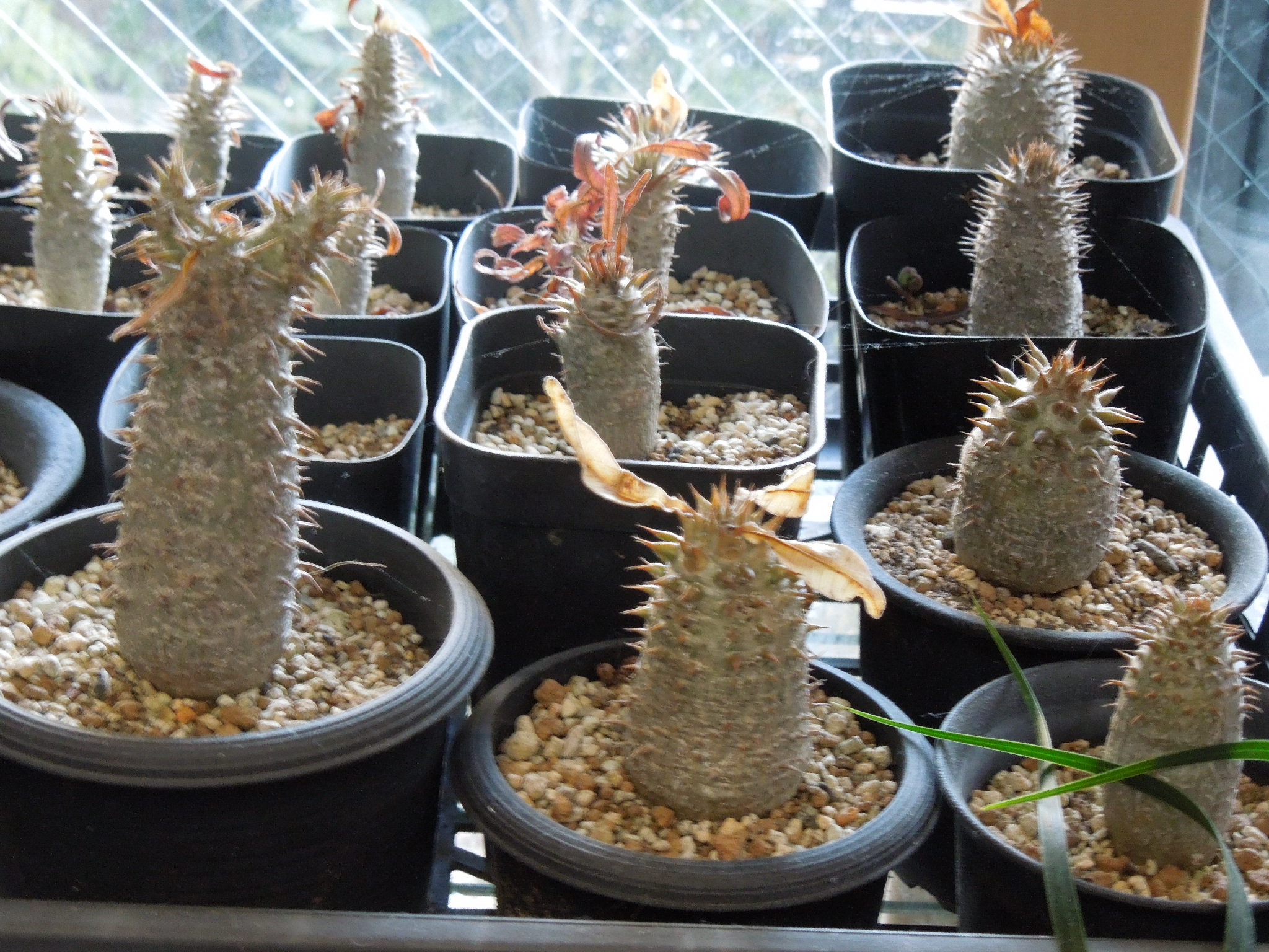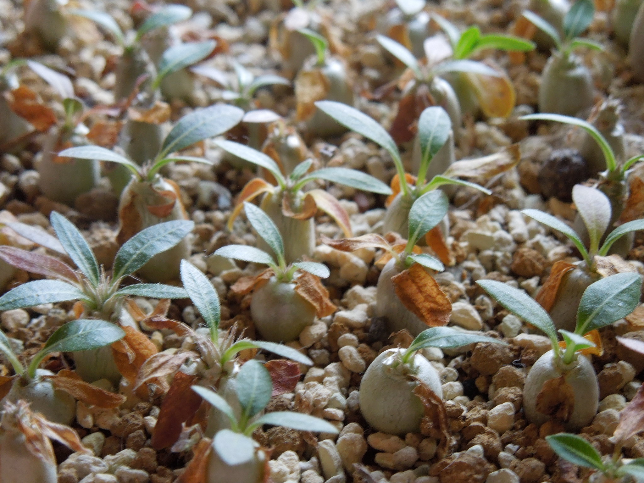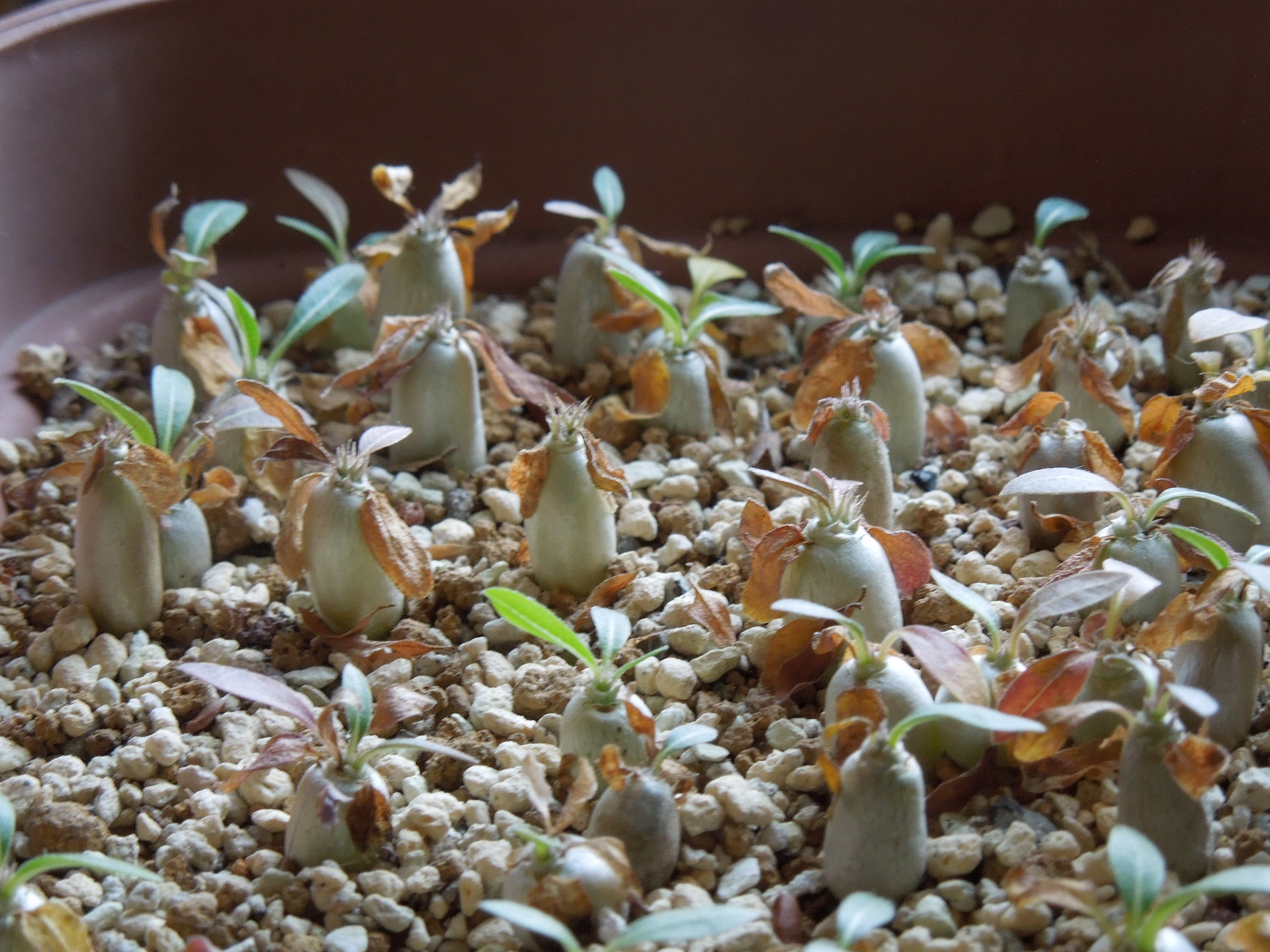 屋内だと休眠しないのか、水切れのようで少し皺になっている苗も有る。