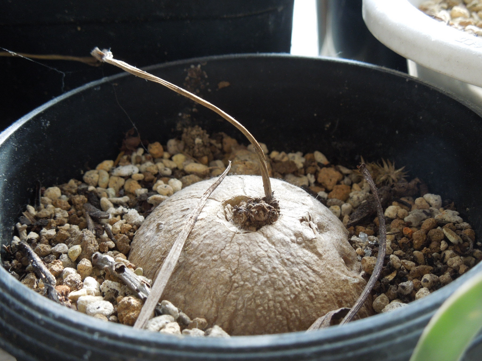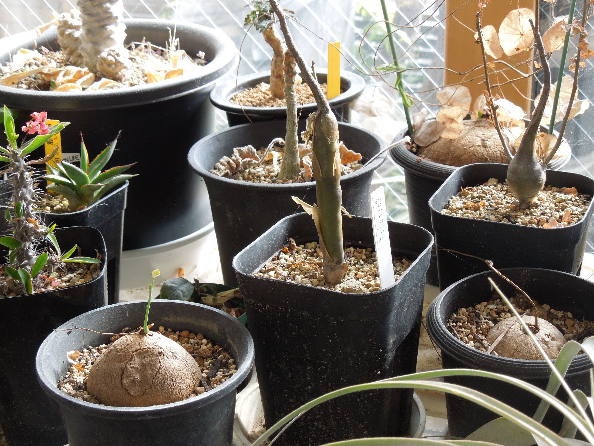 に屋内用温室に取り込んでから1枚葉を落として・・・