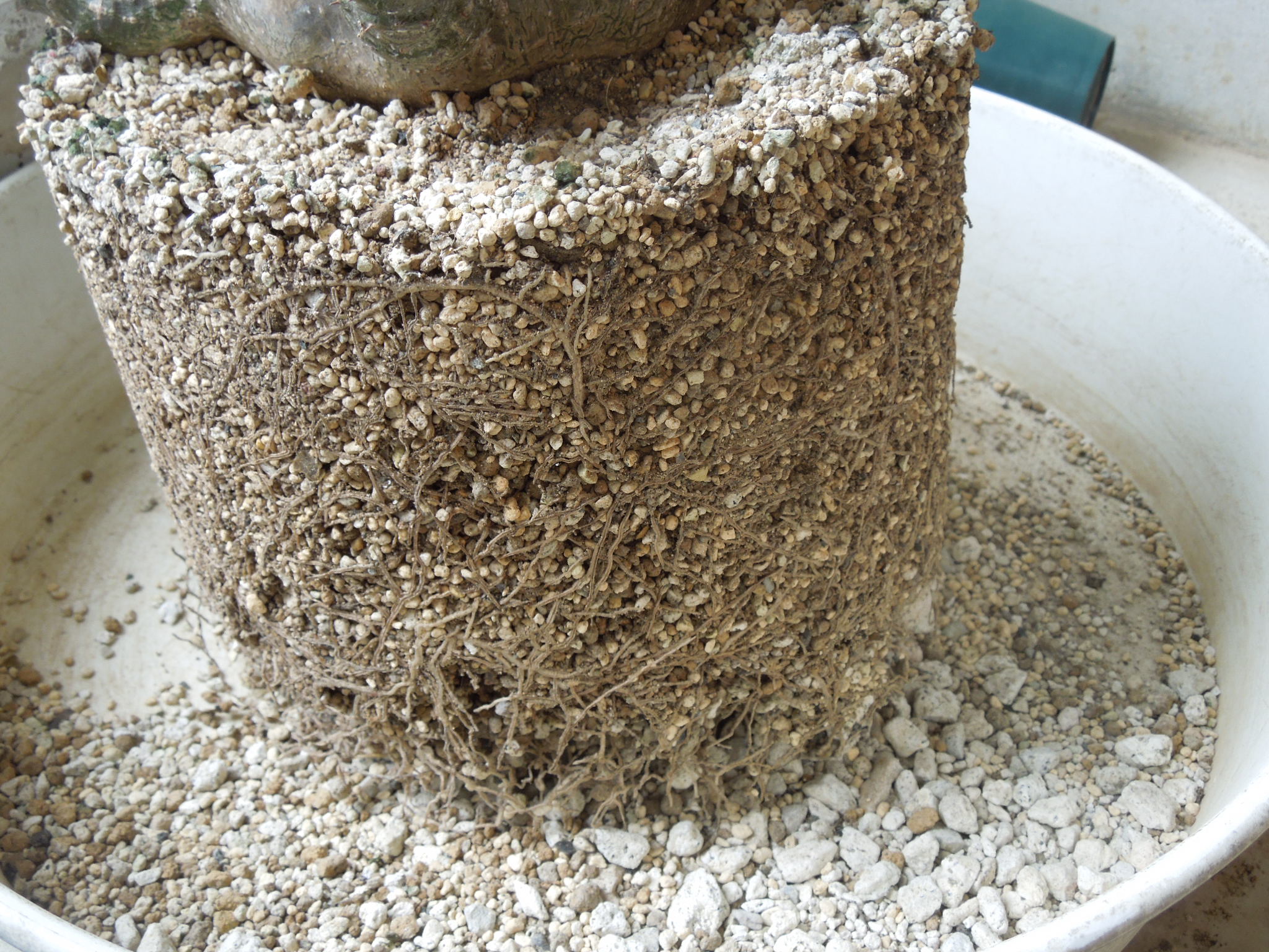 用土が鉢の形のまま抜けるくらいに根が回っていた。