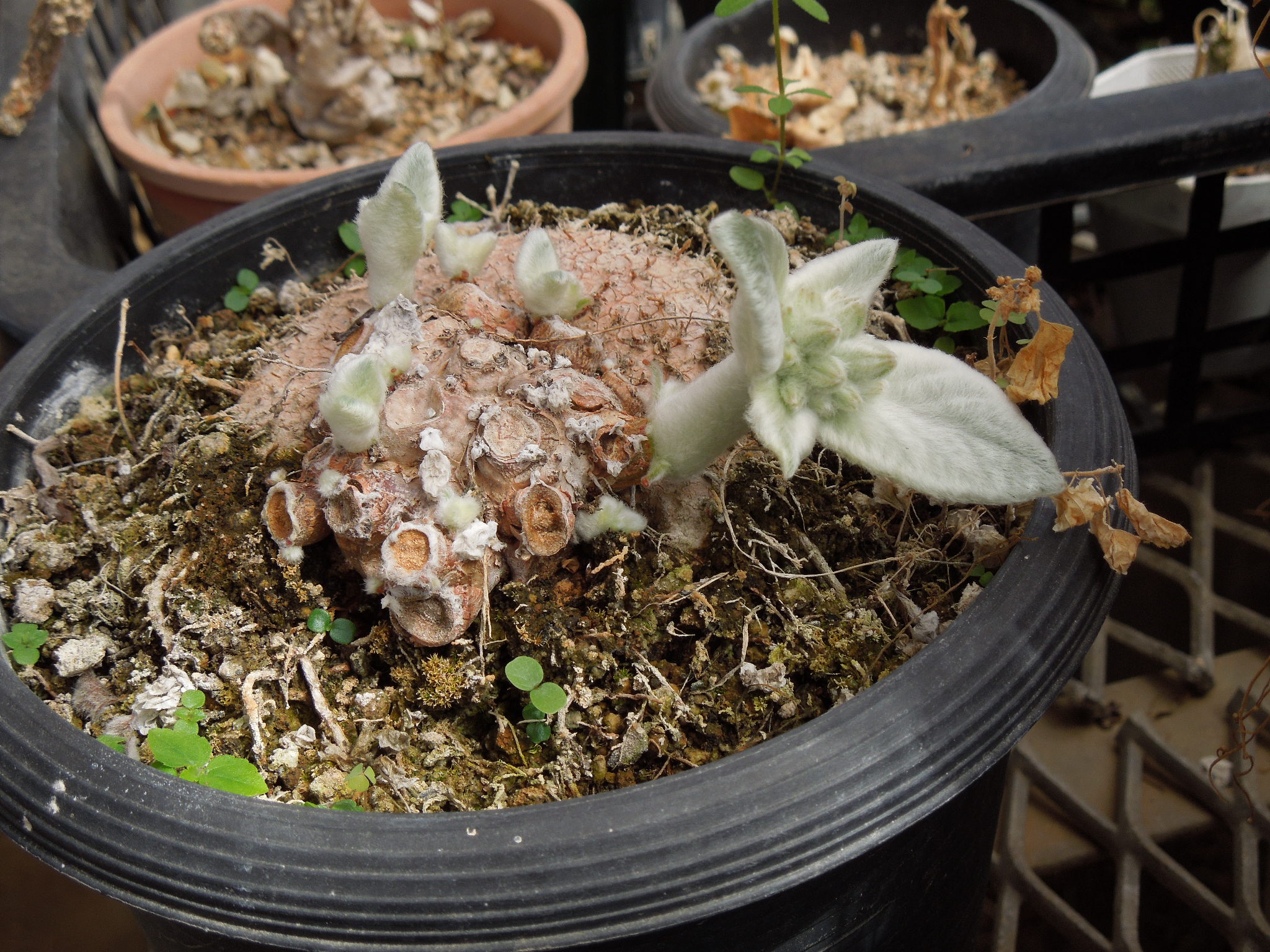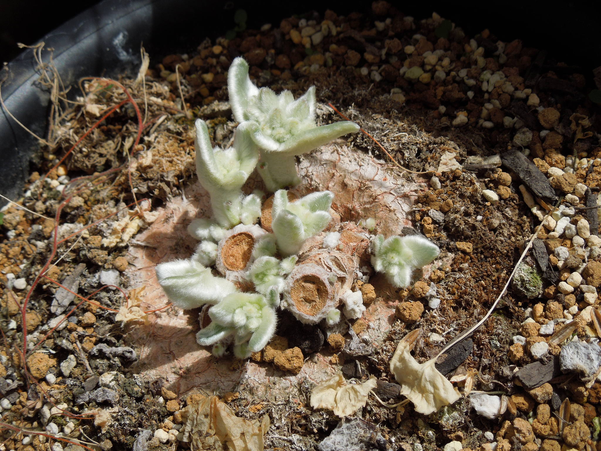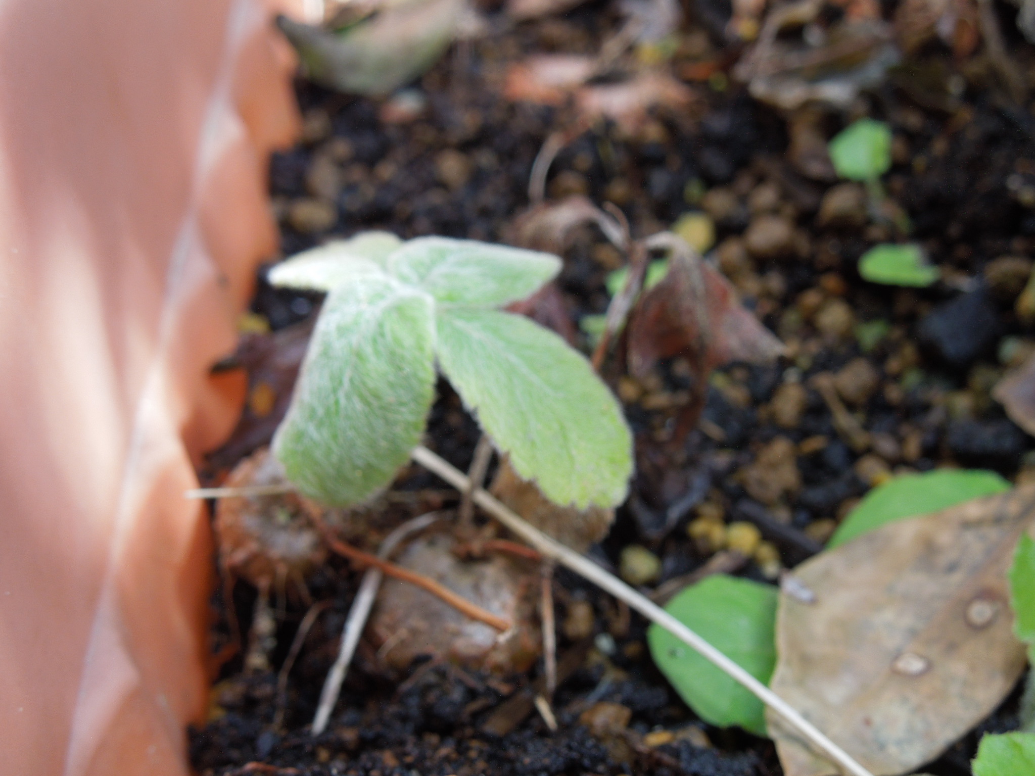 こちらは、自宅屋外、庭木の下で越冬した小苗。どれも小田園芸さんに置かせて頂いている親株からの実生苗。