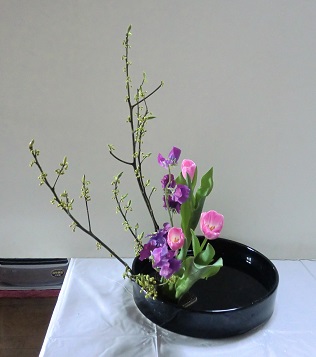 今週末は3月の支部研究会です。今月は日程が遅く2月から5週あいたのと、こども教室などもなかったので、しばらく支部に行っていなくて、本当に久しぶりな感じです。 今月は、花意匠、色彩盛花、写景盛花などバラエティに富んでいます。2級の課題は雪柳、スイートピー3、チューリップ3「色彩盛花・花形自由」 3級の課題は雪柳、カーネーション3、レザーファン3「色彩盛花・傾斜型」 4級の課題は青麦7、ビオラ(1鉢)、ミリオクラダス「写景盛花・様式本位」 師範2の課題はオーニソガラム3、トルコ桔梗1、ミリオクラダス「花意匠・ならぶかたち(正面性)」 中3受験生だった3人のお弟子さんたちは無事全員希望の高校に進学が決まり、安心しました。しかもみんな県内1,2の高校にそれぞれ合格したのですから素晴らしい結果ですそして、進学して様子見てからと言うお子さんの中で、昨年も最後まで1度も休むことなく研究会に参加して年間優秀賞もいただいたお一人だけは、早速今月から研究会に出席するそうで、師範2のお稽古しました。 にほんブログ村 ブログランキングに参加しています。 きょうもポチっとしていただけたら幸いです