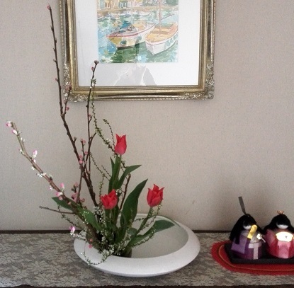 きょうはお雛祭りです。親先生の教室でわたしも桃をいけました。先生的には黄色のチューリップを考えていたらしいのですが、赤が来ていて、でも雪柳の白が映えて赤も良かったのではないかと思っています。この、玄関のお雛様は、キットを買ってきて私の手作りですが、15年位前になるかもしれません。娘もいなくなりましたが、私が食べたかったので、きょうは海鮮ちらし寿司と蛤の潮汁を作りました。にほんブログ村 ブログランキングに参加しています。 きょうもポチっとしていただけたら幸いです