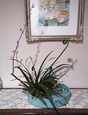 週末の研究会のために、私も親先生の教室でお稽古してきました。私たち1級○専の課題は山桜、ぜんまい3、著莪3、小歯朶5、日蔭蔓「写景盛花・自然本位」です。きょうの山桜がみんな細くて写景らしく入れるのが難しかったです。にほんブログ村 ブログランキングに参加しています。 きょうもポチっとしていただけたら幸いです
