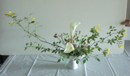 今週末は今月の研究会です。今週は土曜日から3日間が続いた後が続き、研究会の土日は夏の暑さになるようです4級の課題は燕子花(花2・葉3)「花意匠・たてるかたち」 3級の課題は丹頂アリアム5、向日葵3、ポリポジューム5「花意匠・ならぶかたち」 なんとこれが大変です。丹頂アリアムが真っ直ぐ急いで花屋に電話しましたが、これしか入荷しなかったということ仕方なくこれでいけましたが、研究会は当然曲がったもののはずなので、お弟子さんたちには申し訳ないことになってしまいました2脇の課題は燕子花一種(夏の三株)「写景盛花・様式本位」 2級の課題は姫百合3、芍薬3、鳴子百合5「琳派調」 今月の研究会は、先日お稽古したコーヒーカップの自由も含めてバラエティーに富んでいます。大変だけど、楽しいですにほんブログ村 ブログランキングに参加しています。 きょうもポチっとしていただけたら幸いです