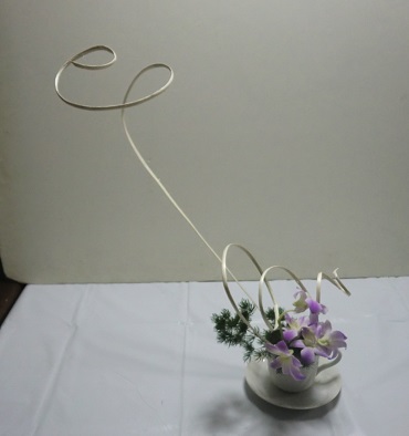 最近ホントに雨が少なかったですが、今までの分全部まとめて降っているのではないかと思うくらいひどい雨と風の一日でした。来週の土日が今月の研究会ですので、土曜稽古の方々はきょうがお稽古です。今年から高校生になった彼女たちは来月に迫った高校総体に向けて部活も忙しいのですが、きょう大会があるため明日来る予定だった方もこのお天気で大会が明日に順延になり、きょうはお稽古に来ました。師範2の課題は晒し巻蔓2、デンファレ1、ミリオクラダス「自由」(コーヒーカップ)という難しいもの。 師範1の課題は晒し巻蔓3、ブバリア2「花意匠・たてるかたち」(プリンセス花器) お天気が悪いので写真も暗いですフラッシュをつけると影ができるのでつけていないのですが。このテーブルを照らしているのがLEDライトなので、写真が暗いのです。お天気が良いと自然光で撮れるのですがにほんブログ村 ブログランキングに参加しています。 きょうもポチっとしていただけたら幸いです