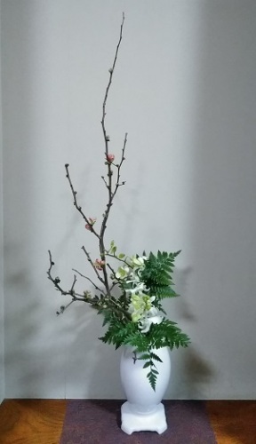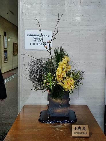 宮城県華道連盟に加盟している流派持ち回りで宮城県庁に挿花していますが、2月は小原流の担当です。きょうは1月最終日ということで、前担当の流派さんから引継ぎ、いけてきました。県庁正面玄関から入ってすぐのところにありますロビーの花です。 4階知事室前の廊下にあるコーナーです。 これから1か月間、数人の担当の先生方でお水入れに行ったり、いけ替えをしたりして管理していきます。どちらも見に行ける場所ですので、ぜひご覧ください。にほんブログ村 ブログランキングに参加しています。 きょうもポチっとしていただけたら幸いです