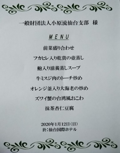 今年も仙台国際ホテルにて仙台支部式典と新年会が開催されました。新年会に先立って行われた式典では、昨年の研究会の年間優秀賞の表彰があり、各クラスの代表者が登壇します。今年はお弟子さんが総代に選ばれましたおめでとうございます メニューはこれだけありましたが、写真を撮らずにすぐに食べちゃったりして・・・・・・一部です。 今年のゲストは、チェロとキーボードの演奏でした無伴奏チェロのみ・・・というのも素敵でした。 それから、恒例の大抽選会私は今年はこちらの係りだったので、皆さんに喜んでいただけるを支部賞として購入してきました。各お花屋さんの賞や藤崎百貨店さんの賞、国際ホテルさんの賞など・・・皆さん、良いもの当たりましたかにほんブログ村 ブログランキングに参加しています。 きょうもポチっとしていただけたら幸いです