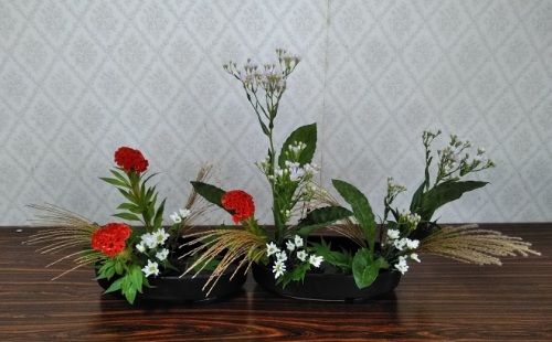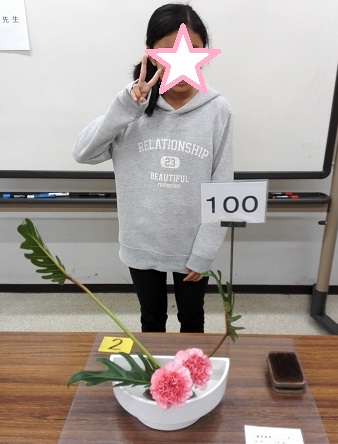 土日の研究会の100点だった作品のうち、写真を取ることが出来たものを紹介します。今回は、会場係お手伝いしてくださっているお若い方々が受賞しました皆さんすばらしいですこれは、会場係をお手伝いしてくださっているAさん(4級家元教授)の作品です。これは、やはり会場係をお手伝いしてくださっているSさんの妹さん(3級家元教授)の作品でした。これは、本科課題です。これは、やはり会場係をお手伝いしてくださっているCさん(1級家元脇教授)の作品です。これはそのお隣でいけていた方、偶然2作並んでの受賞でした。これは、2級家元教授クラスの課題で「花舞」です。花舞は難しいので、土曜日から点数が出ていなくて、95点すらなかなか出ていなかった中での100点でした。凄いですね。