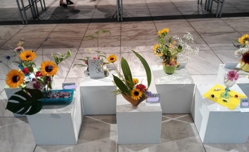 きょうはかなり蒸し暑い一日でした。きょうは研究会のための講習会に参加して、その後せんだいメディアテークに足を延ばしました。 池坊仙台橘支部創立75周年・青年部設立30周年記念花展「花とともに」を拝見してきました。 まずは可愛いお子さんたちの作品でお出迎えしてくれました。こういう小さな作品や自由花などは、どこの流派でも参考に出来ますね。 池坊さんらしい作品はやはり格式があります。 一番奥中央に大きな「砂物」 にほんブログ村 ブログランキングに参加しています。 きょうもポチっとしていただけたら幸いです