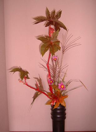 唐胡麻、コスモス、薄、を瓶花にしました。