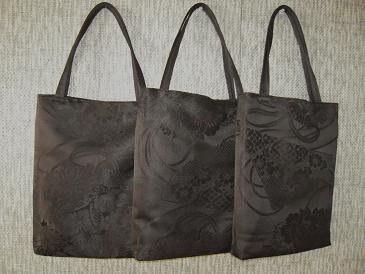 しばらくぶりの着物リフォーム、何か縫ってみたくなってと云っても…頭の中はまだ思考力低下中 それで、黒帯でシンプルなバッグ3個縫いました。 これは必需品のひとつ、持っていると便利です。このバッグを縫い始めたところ、タイミング良くお店のコーナーにバッグ・小物を置いてみませんか~? とのお話がありました。黒バッグだけじゃ寂しいので、ほかに何かと思いますが…。ボチボチ楽しみながら縫い物が出来たらいいですねぇ 。。。。。。。