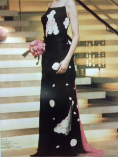 振袖からドレス、やっと・・・・・やっと仕上がりました。とりあえず間に合って良かったー!と喜ぶのはまだ早く、気にいっていただけるのか?それが大きな問題です。イメージ写真にどれだけ近づけたかは依頼者の判断ですので結果は後日ですね^^ 雑誌から携帯で写して送ってきた写真です。私が作るには、あまりに思い切った挑戦でした 楽しくもあり、苦しくもあり。