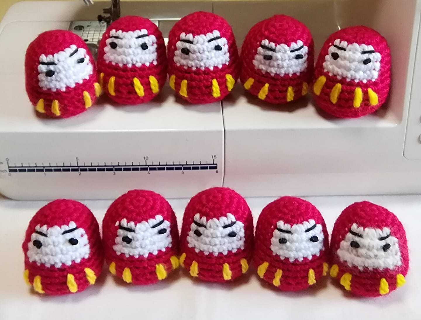 ダルマは赤の毛糸1個と他に少量の毛糸で10個できました。