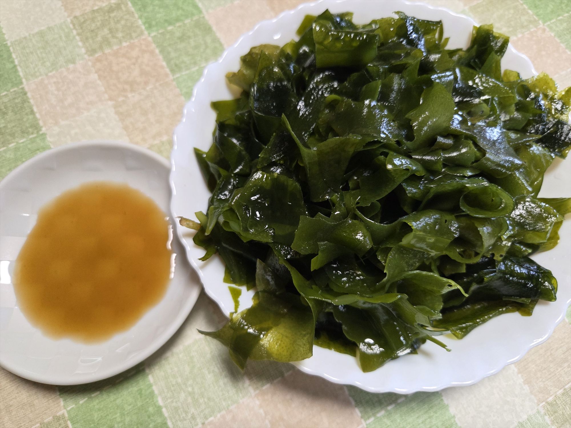 小潮のせいで潮があまり引かなかったのですが、ナイフでワカメを刈って、バケツ一杯分をゲット。