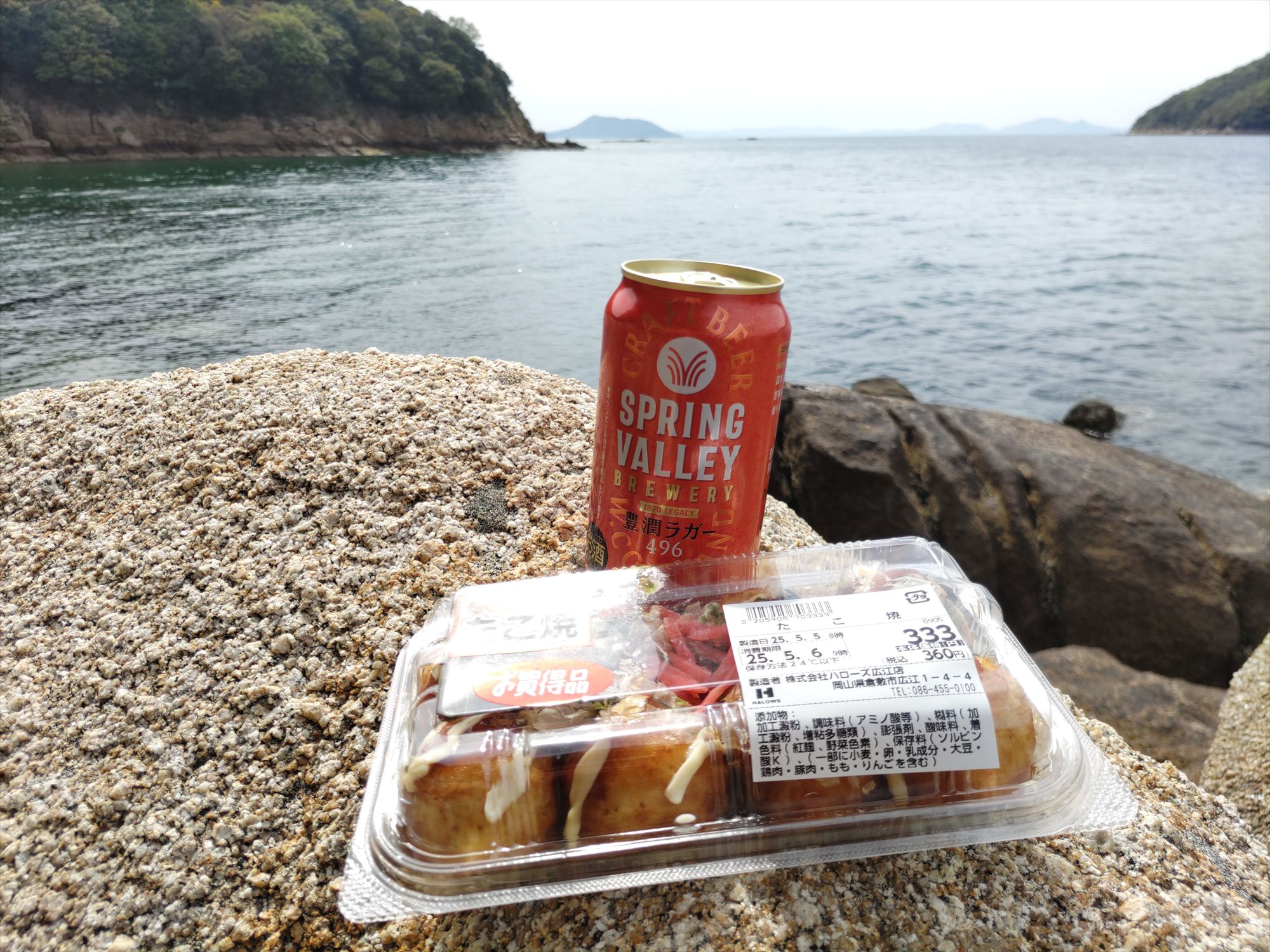 到着早々、たこ焼きとスプリングバレーで乾杯。最高のスタートです!