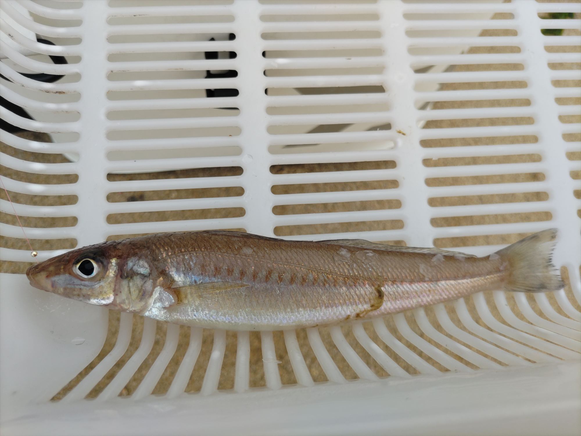 まずはキスを狙って、釣り開始。良型のキスがヒットしました!