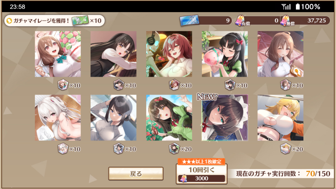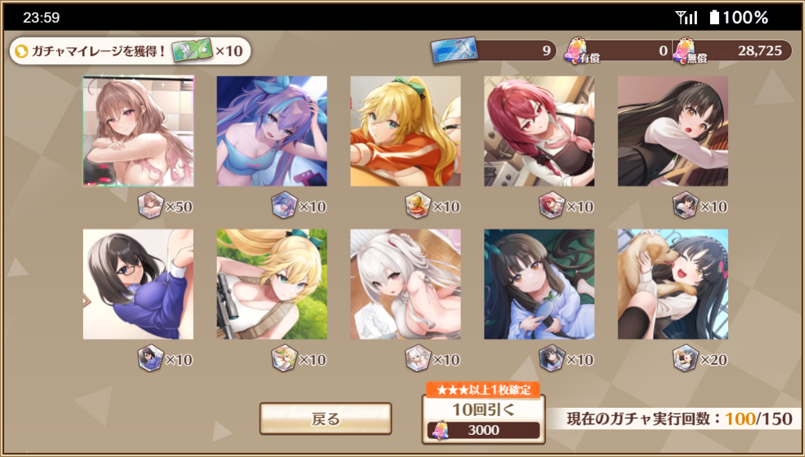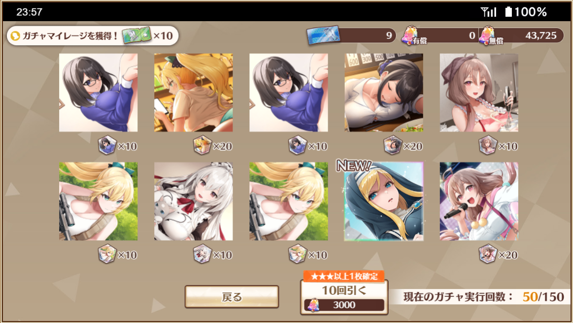 天井まで残り50連ですが、ダブりの可能性もあるし