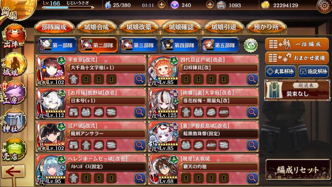 攻撃役2体を[絢爛][裏]大宰府と[暁星]大阪城にしました