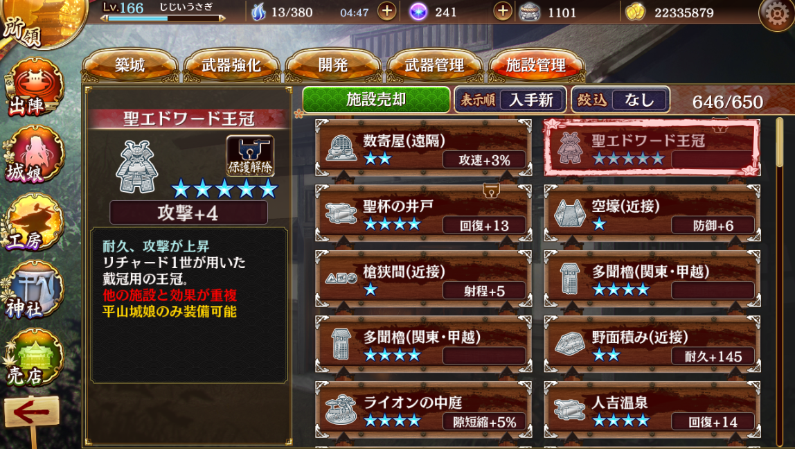 回復は[絢爛]勝竜寺城をヘレンキームゼー城に