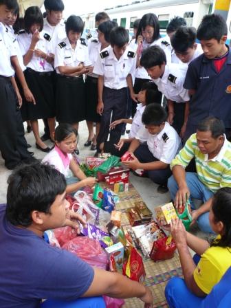 タイから試運転列車に乗ってきた乗客が、群がっています。