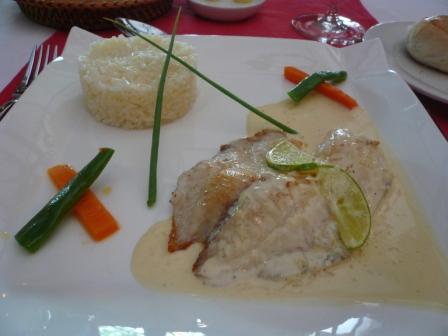 インゲン等のサラダ の次に出てきた料理は、魚料理です。