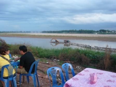 ヴィエンチャンの楽しみの一つは、メコン川沿いの屋台でのんびりとビアラオビールを飲みながら対岸のタイを眺めることです。