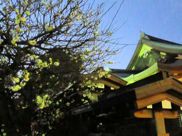 女坂を登り、湯島天神の境内に入ると、梅が開花していました。