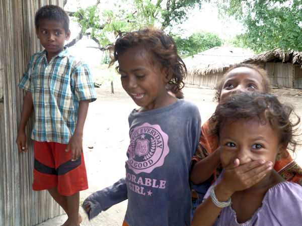 子供たちがキオスクに集まって来ます↑( 2014 4 5 日、マナツト県、東ティモール)