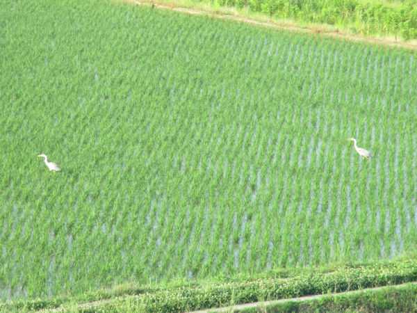 田植から一カ月が過ぎ、水を張った田んぼでは、白鷺が優雅に飛び交っています。