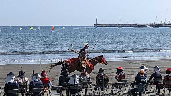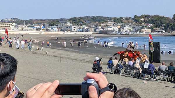 I happened to saw people on Samurai costume watching colorful yachts on Enoshima seashore on March 11, 2023. I wonder what happened. Then a samurai on a running horse appeared and shot an arrow each at three targets. It was a ceremony called Yabusame, traditional ritual for asking gods for the prosperity of the land, the people, and the harvest.