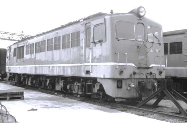 ディーゼル機関車は、亀山機関区の DF50 の 3 号機です。新三菱重工がスイスのズルツァー社と技術提携して製造したエンジンを搭載し、紀勢本線・関西本線東部などで使用されていました。