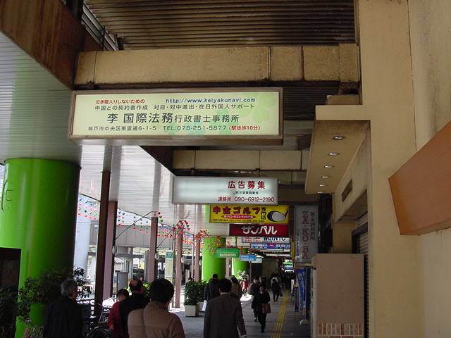 JR三宮駅前からダイエー方向に向かう間の商店街の天井に電飾看板(写真添付)を出した。