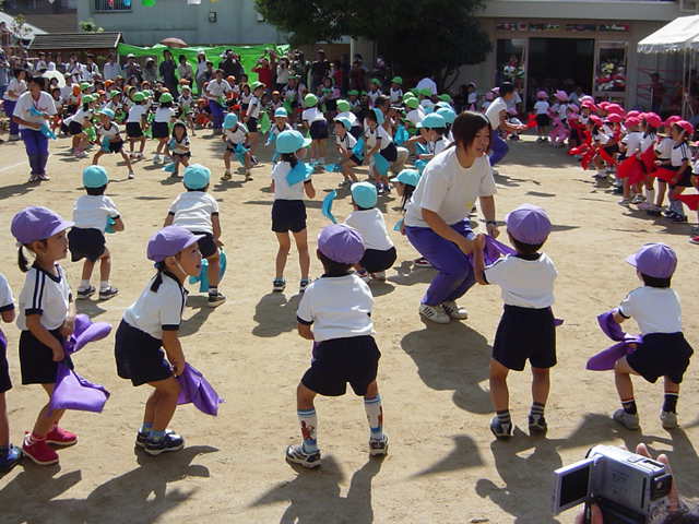 神戸華僑幼稚園の運動会は元気な子供の声でいっぱいだ。