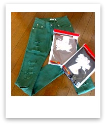 こんばんは♪神戸レタスさんで購入したもの、届いてます。この3点↓カーキ S購入。1,980 円左はブラック、右はモカ購入。 500 円 1,000円送料込↑下二つ、思ったより良かったいつものインナーに変えて、この二つ着てみたけど、暖かいし、カットソーは着丈も長め♪腹巻きパンツ、ヒップ、腿のあたりゆるめだけど、夜の使用がメインなので問題なし!!そして、スキニーのレポ。穿いてみました。入らなかったらどうしようかと思ったけど、結構ストレッチきいているので、Sでピッタリ。そのうちウェストがゆるくなるかな。裏返すとこんな風に裏地補強?されてます↓(ダメージ部分は切り込みが入って、囲うように縫ってあります。)裏の布地の色が違うので、表のダメージ部分から中途半端にめくれて見えたりするのがチョット・・・。ブラックが無難っていうレビューありましたが、納得。ブラックなら、裏の布地も同じような色合いだろうし。ダメージ部分とボタン↓ダメージ部分、あちこち糸がほつれてたりしますボタンは安っぽいですね。あと、カーキの色合いですが、思った色合いとちょっと違いました。でも、改めてショップさんの画像と比較すると、画像通りのお色ですね^^;(↑勝手に色を想像してたみたい(笑))以上、マイナス点、結構書きましたが、ライン、フィット感は好きプラチナ優待で半額だったので、お値段考えれば全然一応、着画(パンツ穿きかえただけですが^^;)カメラマン、長男クン。(なんか恥ずかしい....しかも傾いてる。)穿きつぶそう♪お気に入り整理してたら、ポイント10倍3,970 円 送料込次男クン、もうすぐ1歳!伝い歩きもするようになり、ご飯中はバンボから抜け出して大変しかしバンボ、やっぱあると便利。長男クンの時、こんな安くなかったよな~。さ、クローゼットの整理、ちょっとしよう。最近ちょこちょこ服購入してるので、クローゼット、ぱんぱんなのでー。では★