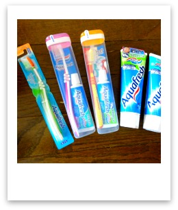 こんばんは(´∀`)ノ子供たち、抗生剤飲んで3時間近く寝てます。私も一緒に2時間ほど寝ちゃいました^^今晩は、ダー様出張でいないので、夕飯、あるもので(笑)だらーりしかし、私まで喉痛くなってきたのよね・・・・・うがい薬でうがいしよ。さてさて、モラタメさんでタメしましたよん♪・ アクアフレッシュ キッズスクールセット ×1個 ・ アクアフレッシュ やわらかミント ×1個 ・ アクアフレッシュ クリアミント ×1個 ・ アクアフレッシュ トラベルセット ×1個 ・ アクアフレッシュエクストリームクリーンブラシ ×1本 左から2番目が『トラベルセット』で、その隣、中央が『キッズスクールセット』。一瞬あれ?と思ったけど、歯ブラシの長さや形などが違うね^^‘アクアフレッシュ キッズスクールセット'にも入っている『やわらかミント味』ははじめての大人ハミガキに最適な親子で使えるハミガキだそう!しかし、うちの子供たちにはまだまだ早い・・・・小学生くらいのお子さんに良さそう!今使ってるのがなくなったら、やわらかミント味、タメしてみよ~♪では★