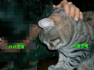 パパとべるは男同士で気が合うのか、とても仲良しです今日もおでことおでこを、くっ付けていま~す これはべるがパパの手におってをしています(犬みたいでしょう?)でも、時々こう言う格好するんですよ、わかりますか? パパはべるを相手にこんな事して遊んでいます、皆さん笑って下さい