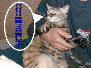 今日はパパが嫌がるりりを抱っこしています りりは自分からひざに座ったりするのは好きなんですが 抱っこされるのがどうも苦手なようです でも、そんなりりをパパはどうしても抱っこしたがるんです りりにしては良い迷惑だと思いますけど・・・・・