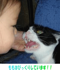 今日可愛いお友達が3猫に会いに来てくれましたでも、べる以外はお客さんがとっても苦手なのですもう少しよその人に慣れてくれると良いと思うのですが、全然だめなんです最初のももの顔を見て下さい初めて、小さい子に抱いてもらってどうしていいか分からない様子です緊張のあまり、歯をむき出しています それでも、少しは慣れたかなぁ~~ あーちゃんせっかく遊びに来てくれたのに上手く遊べなくてごめんねこれに懲りずにまた遊びに来てね~~~ももも、りりも、もう少し皆さんに可愛がってもらえるようになって欲しいと思うのですが・・・・・