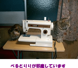 ミシンを出してカーテンを作ろうとしたら案の定べるとりりのお邪魔虫がやって来てミシンの上に乗ったり、足元に来たり、針山の針を口で抜いたりもうろくな事はしないんです ママ:2人ともお願いだからあっちに行ってて~~りり:ママりーちゃんも手伝ってあげようか~~べる:ママなに作ってるの、ここに座ってて良い??? 今日の私はちょっと怒ってばかりいましたべる君、りりちゃんごめんね、でもママの言う事も少しは聞いてね・・・