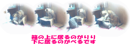 幾つになっても箱の中が大好きなべるお兄ちゃん空箱を見つけてさっそく入ろうとしています、いや入りましたそれを見つけてりりが、自分も入ろうと邪魔しています 箱の外から手を入れてべるにちょっかい出しています それを、少し離れた所から、ももがじ~っと見ています 家の3にゃん今日はこんな事して遊んでます