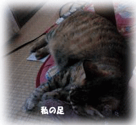 わが家のりりは寝る時、私にひっついて寝るのが癖なんです今日は、私の足の上に頭を乗せて寝ています わかりますか????最初は、まあいいかとそのまま寝かせていてもだんだん、私の足がしびれて来ます りりは私達にひっついて寝ないと不安なのかもしれないけどそんな神経質な子には見えないんですが????
