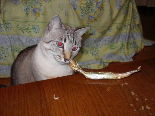 日本に住むにゃんこが、お魚好きなのは日本人の食習慣からだそうですよ~昔から、猫のエサとして魚をあげていたから・・・そういえば・・・キャットフードもまぐろやかつおが主体ですよね外国のキャットフードは鶏や牛が主でお魚が入ったものは少ないようですお魚派のこまちは、テーブルの上のししゃもを狙ってます GET!さて、お食事♪本日の夕食はウエットフード・釜揚げしらすデザート(猫用おやつ)・カリカリ少々最後にこの、ししゃもです頭とシッポをきれいに残して終了今年もダイエットは無理のようです。。。