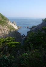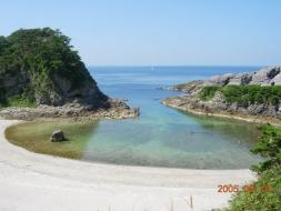 旅館の食事で、初めて見る魚が出ていた。おばさんに名前を聞くと、たかべという魚とのこと。 見た目は淡白そうなんだけど、食べるとさんまとかブリのように脂がのっている。前日は煮付け、次の日は塩焼きで食べたけど、塩焼きのほうがあっていたように思う。また食べたいけど、スーパーでは見かけたことないなあ。 式根島には海辺の温泉がいくつかある。温泉としてきちんと整備された所もあるんだけど、せっかくなら、自然の海辺で、岩の間のお湯につかってみたいと、「地鉈温泉」と、「足付温泉」というところに行ってみた。 写真は地鉈温泉。地面を鉈できったような、谷の一番下にあるからそういう名前になったとか。確かに自転車を降りてからかなり下まで降りていかなければならず、行くのは結構大変だった。 やっとの思いで到着すると、岩が黄土色になっていて、茶色くにごったお湯がわいている。いかにも効きそうな色!触ってみると・・・・熱い・・・・ここは湯温が高いので、満潮になって海水で薄まったくらいがいい湯加減とのこと。潮が満ち始めてから行ったんだけど、まだ熱く、かろうじて入れる所はほんの一部だった。もっと潮が満ちると、入れる所が広くなって、もっと気持ちいいんだろうな。 もうひとつの足付温泉は、地鉈温泉よりもずっと行きやすいところにあった。こちらは泉質が違うらしく、透明なお湯だった。こちらは少し時間が遅かったようで、ちょっとぬるい。でも、岩の中に沈むようにして入る温泉は結構楽しかった。