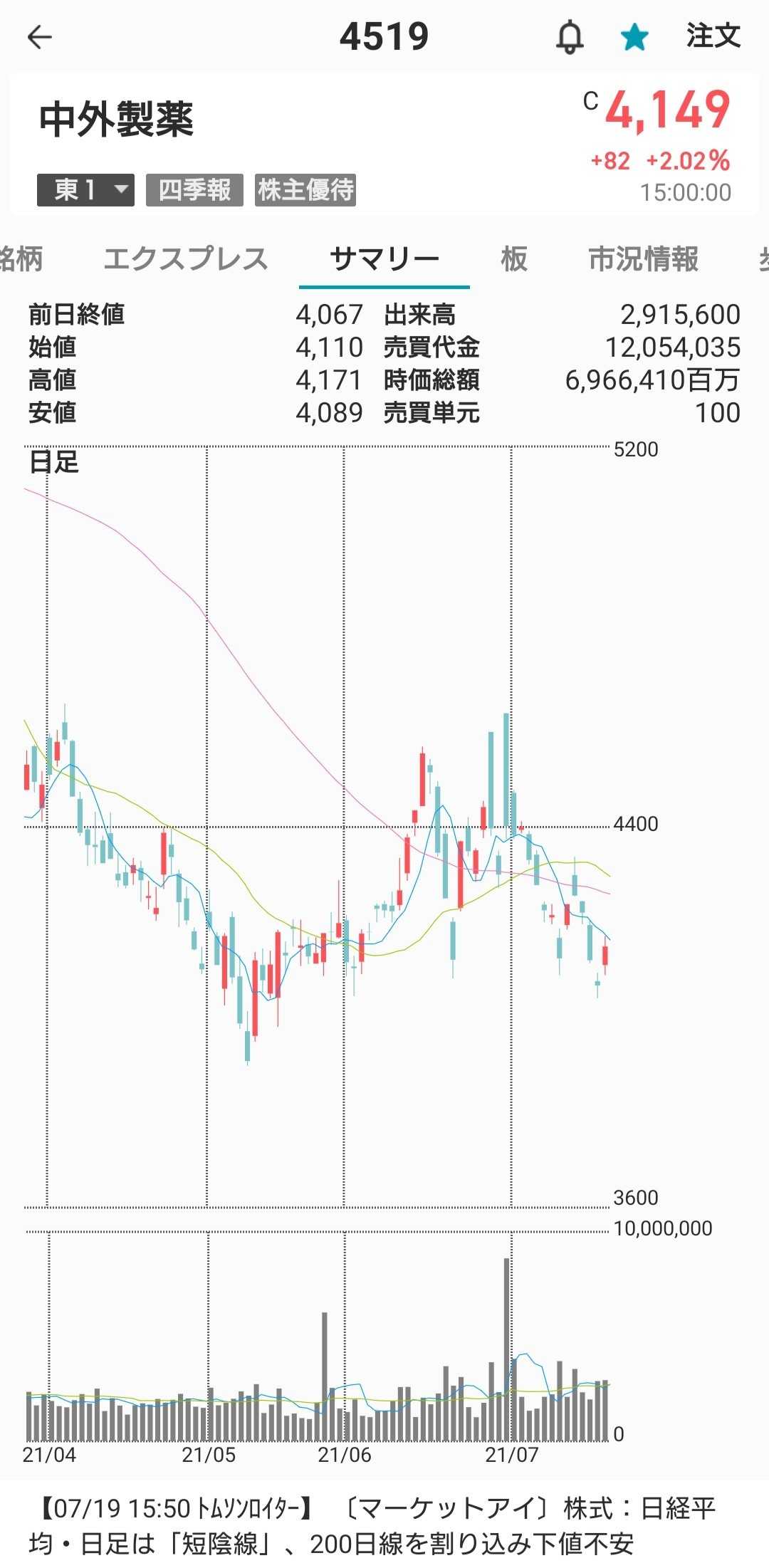オリンピックは、メダルラッシュで、盛り上がっている反面、日本株は弱いですね。 アメリカの株価がちょっと下ると、大きく下がる傾向が最近ありますね。 なかなか難しい相場でした。 本日は、チェックする時間も少なく、売却出来ず。 明日は、7月末配当の権利落ち日&先勝です。 いい日になりますように。