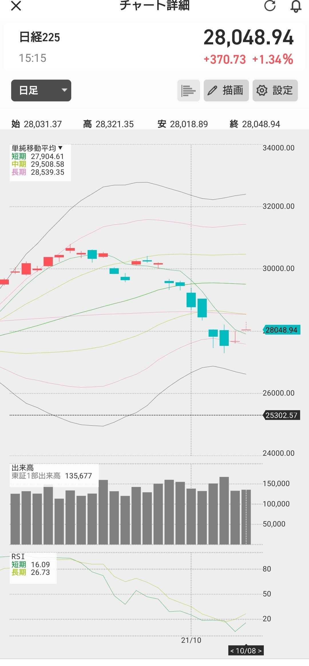 本日の日経平均株価 結構上がりましたが、含み損が減った&プラスになった銘柄もありましたが、売却機会を逃しました。 明日に期待するしかなさそうです。 今日は売却ゼロ 明日は、実質一人で留守番。 使えない、居ないほうがいい、形だけの給料泥棒に近い爺さんと2人。 過酷な勤務でただでさえ体調悪いのに、、、 絶望しかありません。 とりあえず、明日は天一天上日の終わりの日&神吉日&天赦日&10月末配当の権利付き最終日。 良いことありますように。