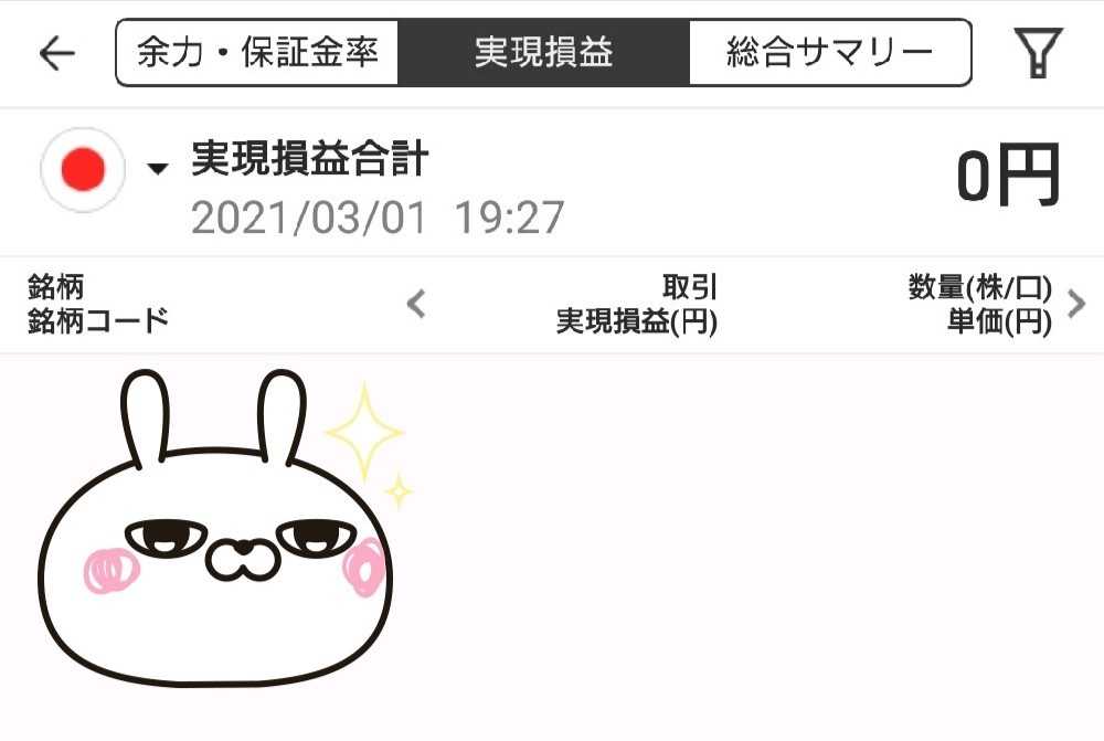 昼休みに見たら、利益が出せて売却できるだけの銘柄がなかったので、売り注文が出せませんでした。