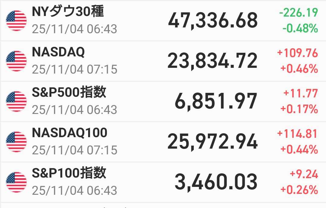 政治がらみで、日本株不安定だし、アメリカの株も、関税関係発言で、少し下がったし、、、 日本の政治も、とある党が、連立政権離脱のニュースで、 XなどのSNSで民意を見ると、良かったという意見ばかりなのに、 オールドメディアなどは、それが良くない的な意見ばかりなので、特に大企業などにとっては、都合が悪いことだったのでしょうね。 ともあれ、早く、総理大臣決まって欲しいですね。