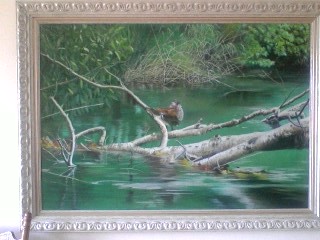 またまたじいじの絵自慢です!今回、夫の両親が引っ越した家に、初めて行ったのですけれど、リビングに入ってすぐ、壁に掛けられた大きな絵が目に飛び込んできたのです。あっ!!これ!!もしかして…あの時の???あの時とは、昨年夏に、一家5人ででかけた釧路川の川くだり。 川くだりの日記はこちらそこで、一杯写真を撮ったのですけれど、写真の腕も、私とは比べ物にならないじいじ。お気に入りの写真が、50号の大作の絵になりました。じいじ、やっぱり凄いよ!先日の紅白歌合戦でも、60代の新人歌手の女性を初めて拝見して、深みのある歌唱力にうっとりしましたけれど、うちのじいじも、絵の世界で、84歳デビューしないかな~。私は今年、家族を応援する年にしたいから、早速じいじを応援したいなあ!