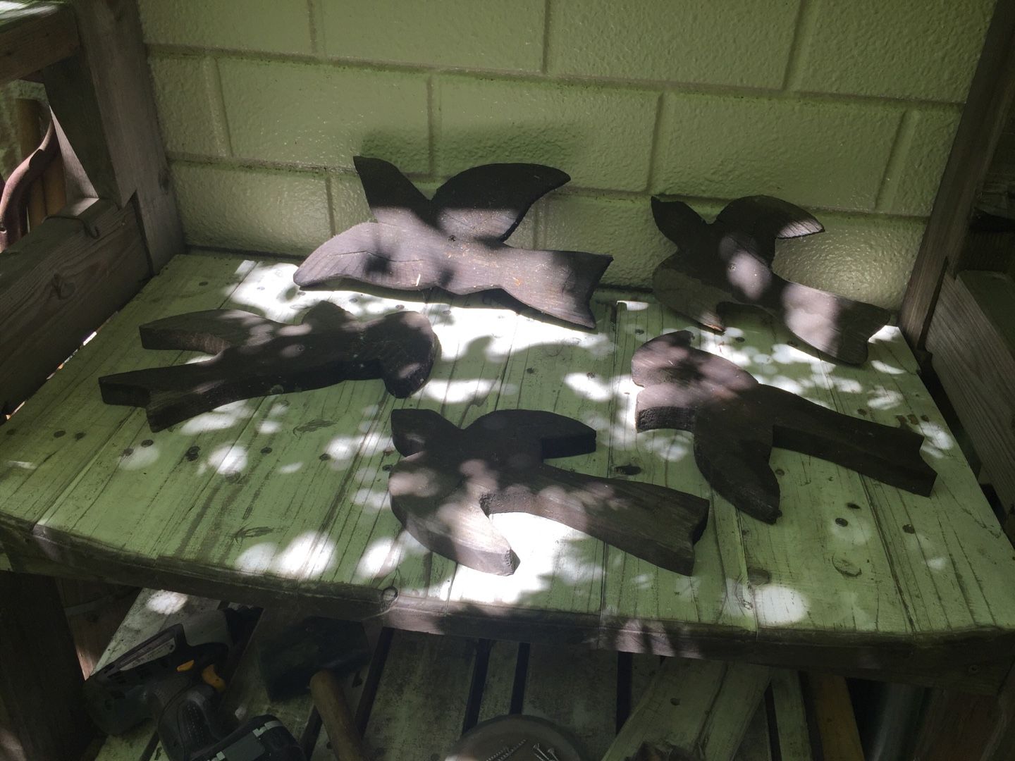 かつての木製のオブジェの鳥たちが