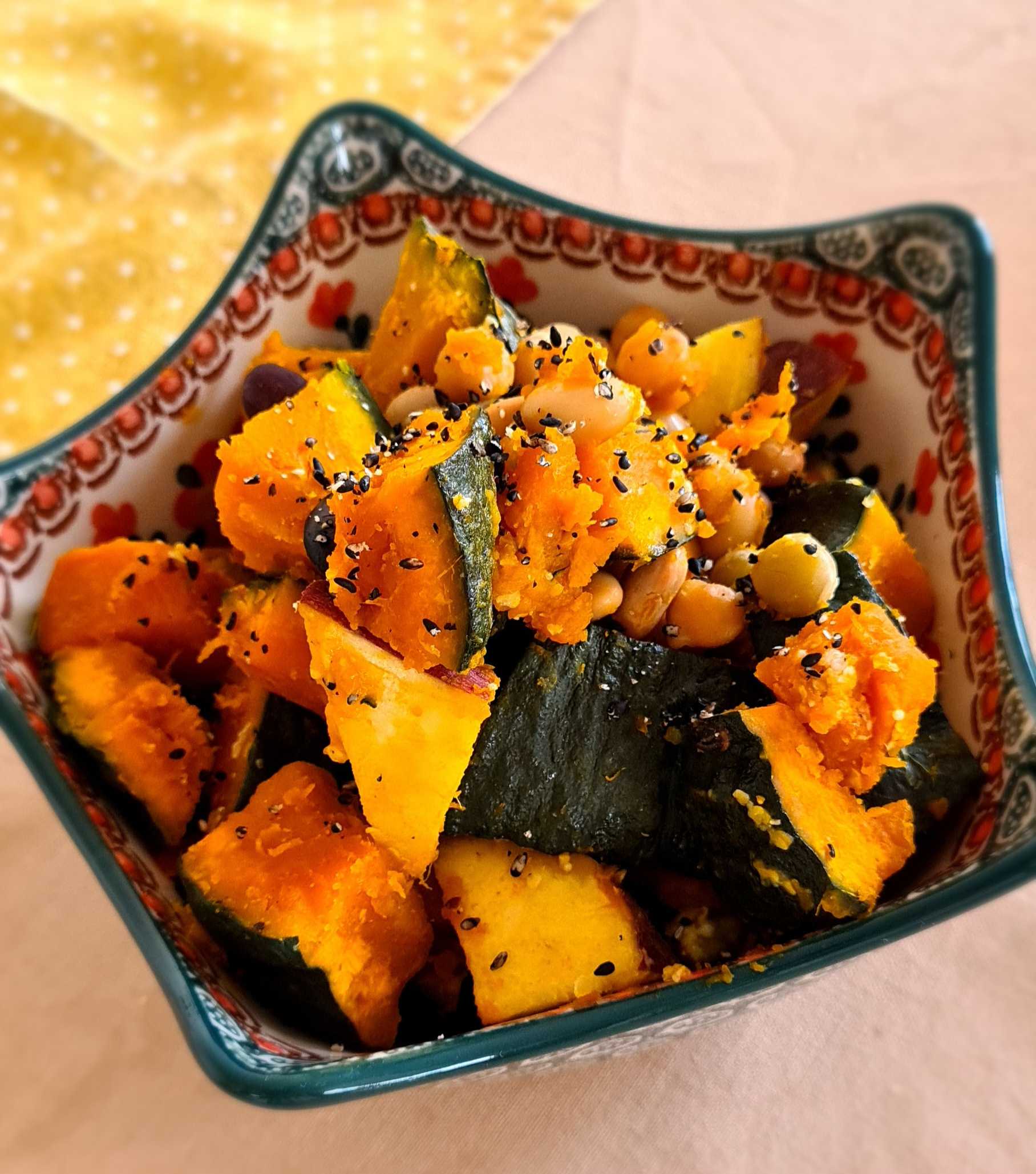 かぼちゃとサツマイモ•サラダビーンズのサラダ😋🍴💕👍